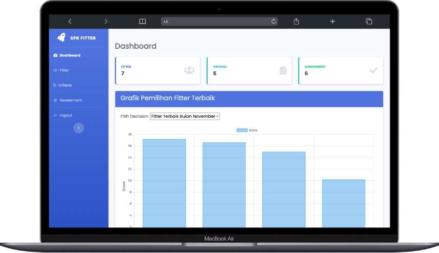 Sistem Pendukung Keputusan (SPK) Pemilihan Fitter Terbaik yang dikembangkan untuk membantu manajemen menilai dan memilih fitter secara objektif dan akurat menggunakan metode pengambilan keputusan berbasis multi-kriteria.
